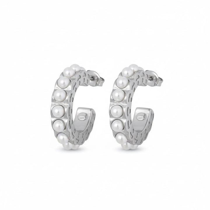 Materials: 18k Gold on Stainless Steel, Rhodium On Stainless Steel, Glass Pearl