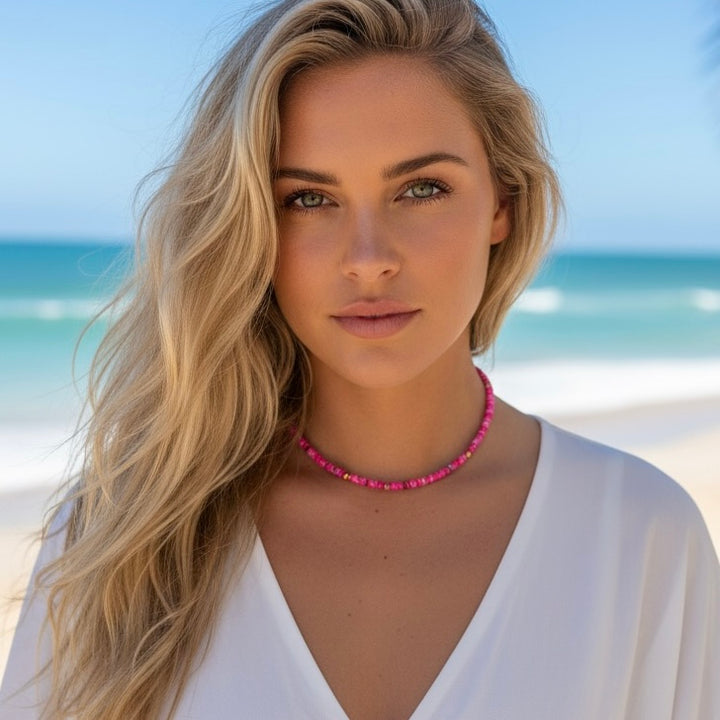 A captivating fusion of nature's artistry and the allure of delicate pink hues. This necklace celebrates the enchanting beauty of imperial jasper gemstones, meticulously crafted to create a timeless and versatile accessory.