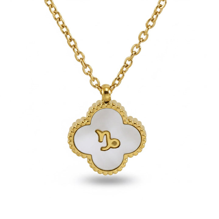 Each pendant features a delicate four-leaf clover design intricately carved from luminous mother of pearl, enhancing your connection to the stars and your individuality. Embrace the beauty of nature and the mystique of astrology with this exquisite pendant, a harmonious blend of charm and cosmic significance.