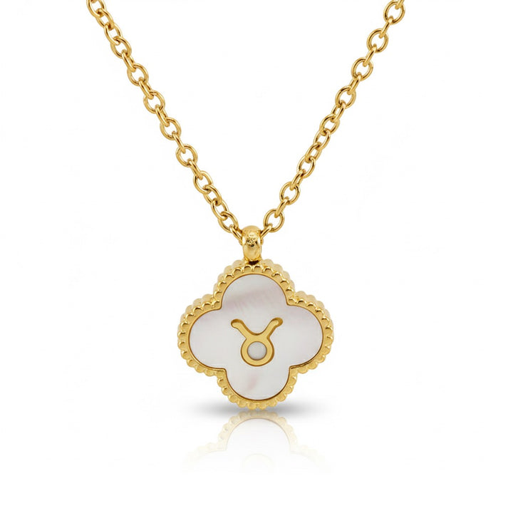 Each pendant features a delicate four-leaf clover design intricately carved from luminous mother of pearl, enhancing your connection to the stars and your individuality. Embrace the beauty of nature and the mystique of astrology with this exquisite pendant, a harmonious blend of charm and cosmic significance.