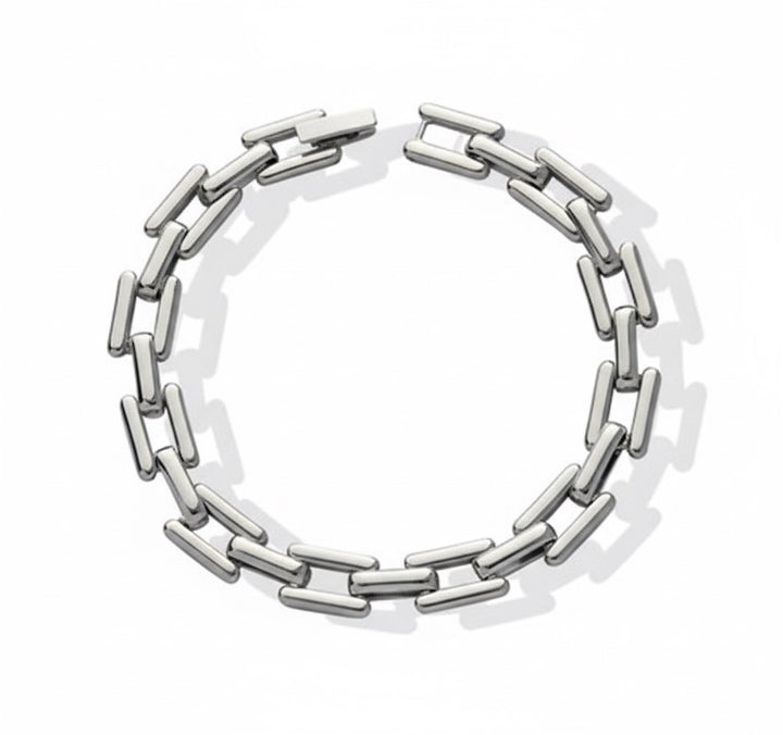 Each link of this bold golden chain bracelet is meticulously crafted to showcase its substantial size and luxurious texture. The boldness of the design captures attention, while the polished surface reflects light with a radiant gleam, making it impossible to ignore.