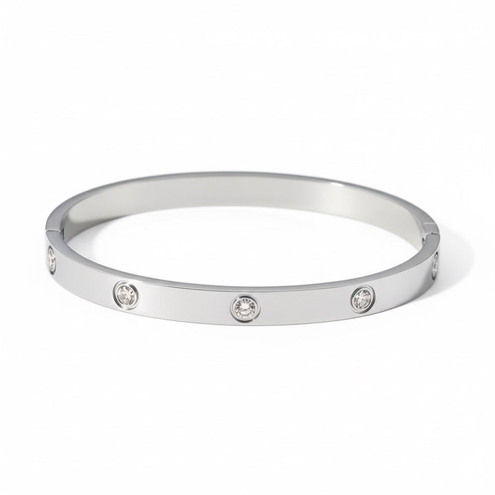 This stunning bangle with sparkling white zircon is the perfect accessory to elevate any outfit. Shop now and add some glamour to your look!
