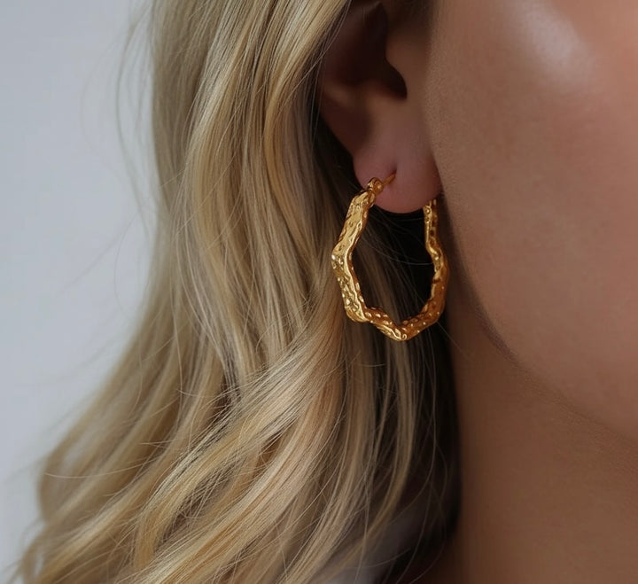 These earrings showcase irregular shapes and contours, creating an artistic and eye-catching allure. The unconventional design adds an element of dynamic charm to your look.