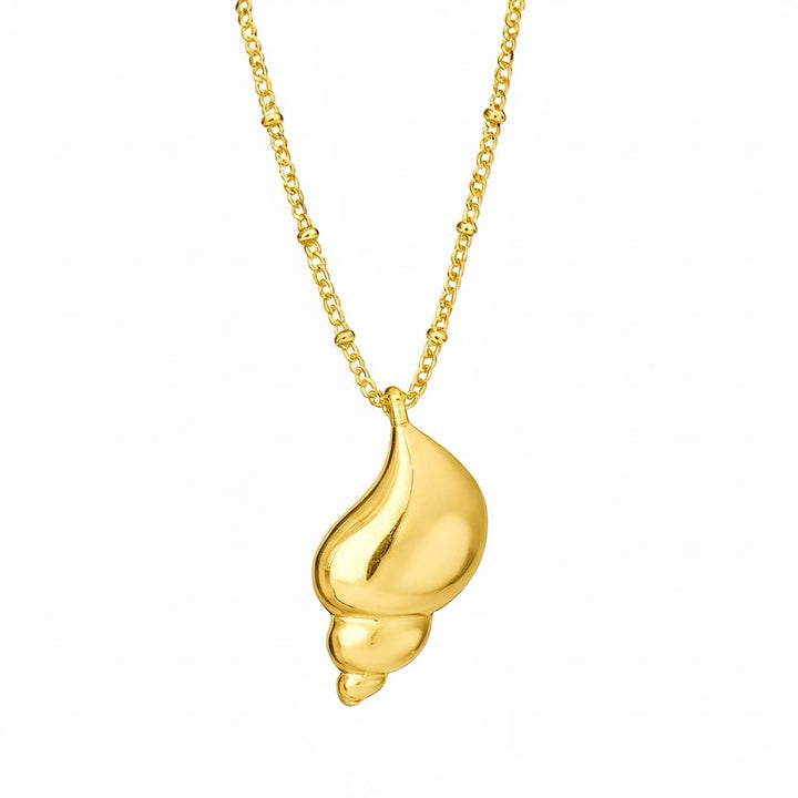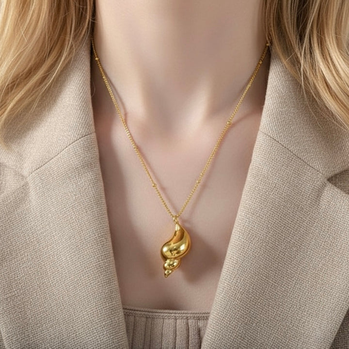 Discover the elegance of a golden conch necklace that will add a touch of sophistication to any outfit.
