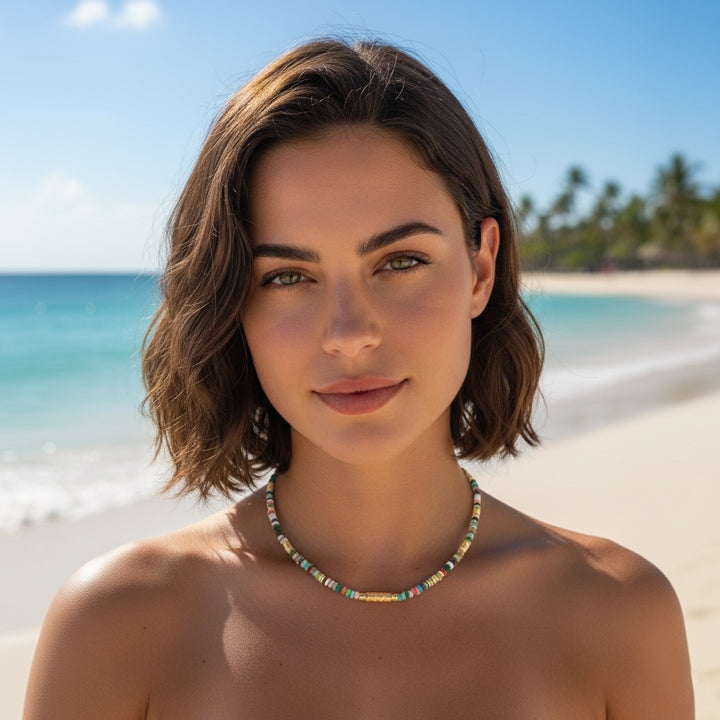 A dazzling kaleidoscope of colors and textures that brings together the enchanting beauty of various gemstones in a single, captivating accessory. This necklace is a celebration of the rich diversity found in nature's treasures, offering you a vibrant and eye-catching piece that's as unique as you are.