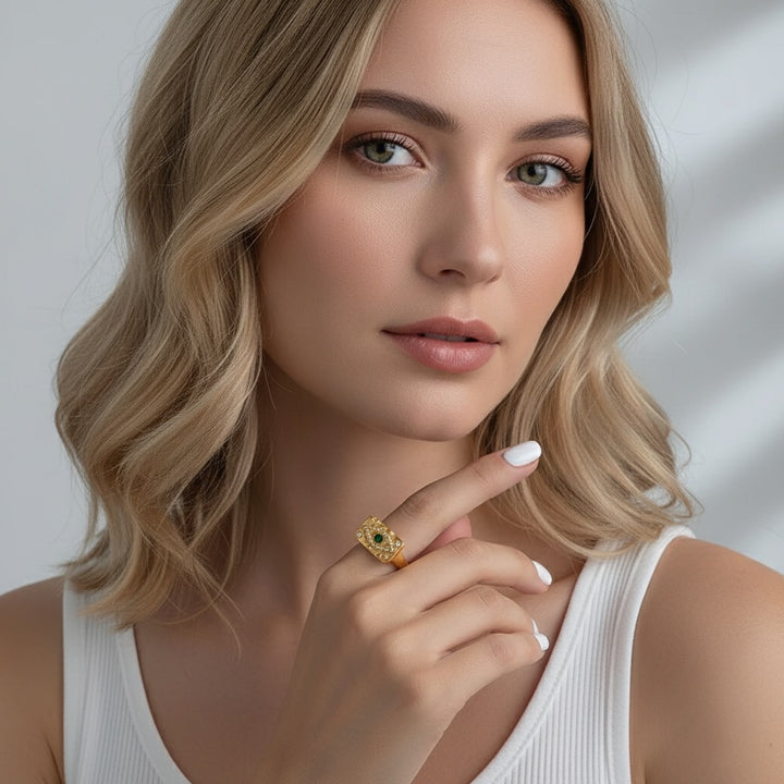 A powerful and protective symbol combined with the captivating allure of zircon gemstones. The evil eye is a symbol of protection, believed to ward off negative energies and bring good fortune.
