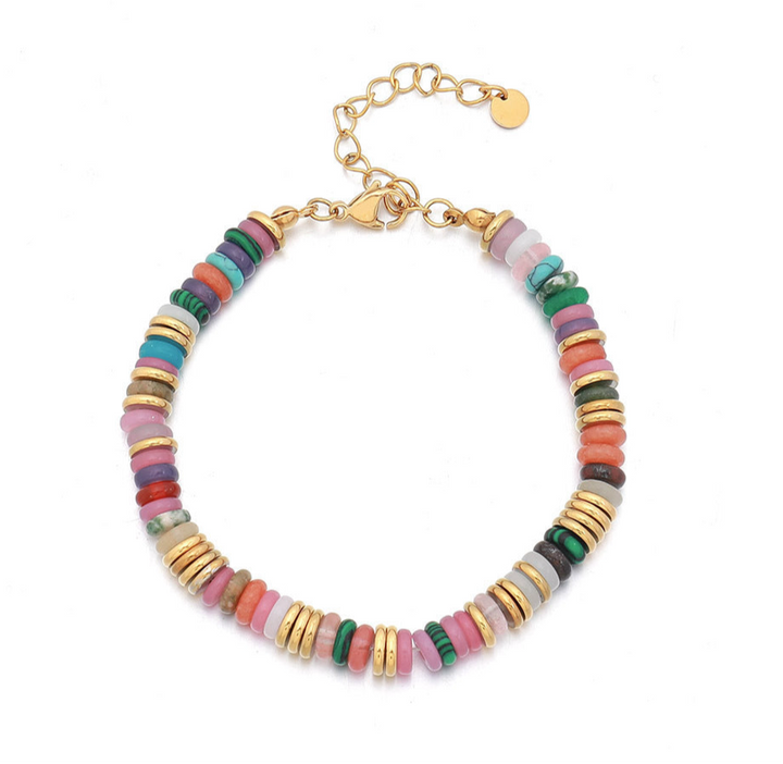 The bracelet features meticulously selected gemstones in an assortment of colors, each representing a unique and vivid hue. The diverse range of gemstones creates a captivating and harmonious play of colors that catches the light and adds a touch of vibrancy to your ensemble.