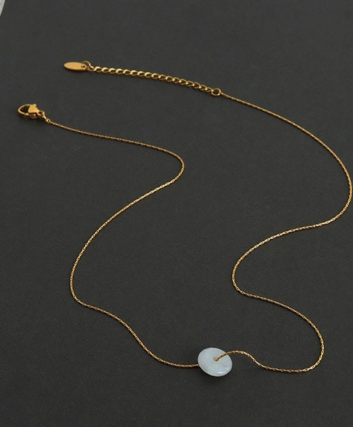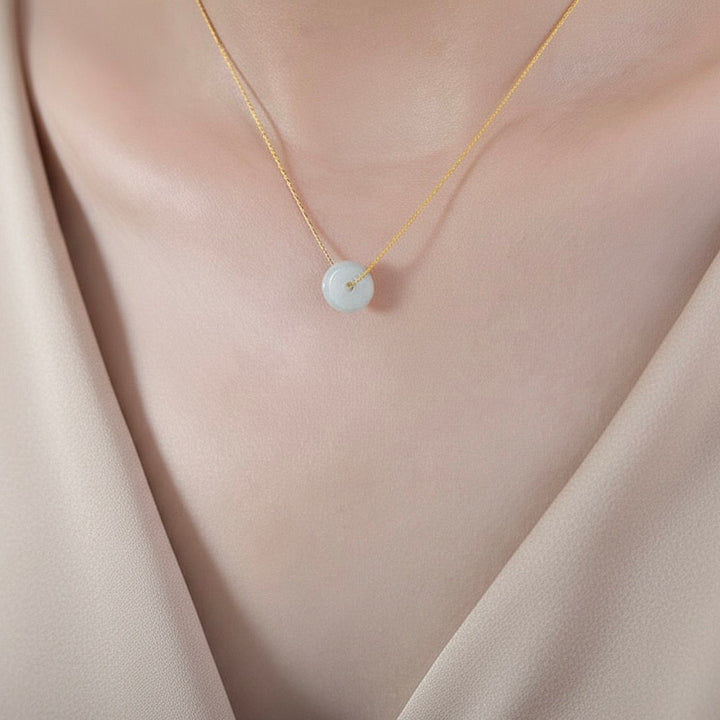 Unleash your inner charm with a dainty necklace boasting a mesmerizing round jade pendant. Experience the allure of this unique piece and add a touch of elegance to any outfit. Get yours now!