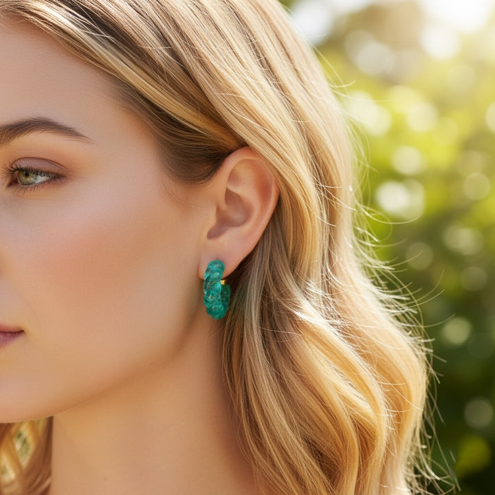 Our Le Bonbon Hoop Earrings – a playful twist on the timeless hoop style. These earrings showcase a whimsical twisted jelly-like design that gracefully curves around the earlobe, offering a delightfully unique and statement-making look. This piece is a true work of art, meticulously crafted to emanate both artistic flair and exquisite elegance.