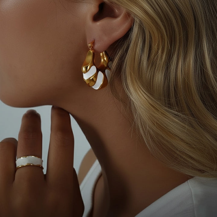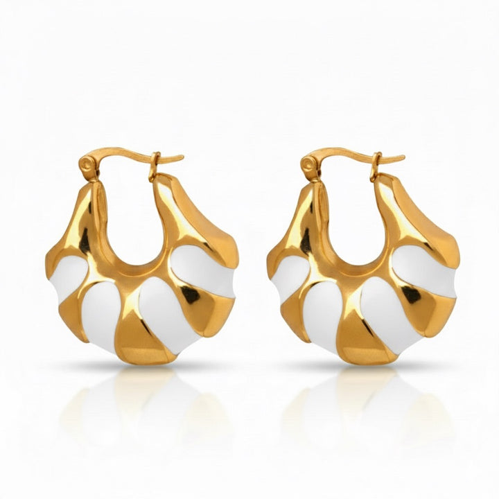 Elegance in every curve, beauty in every detail. Adorning your ears with these hoop earrings featuring a delicate white enamel pattern. A touch of sophistication that speaks volumes.