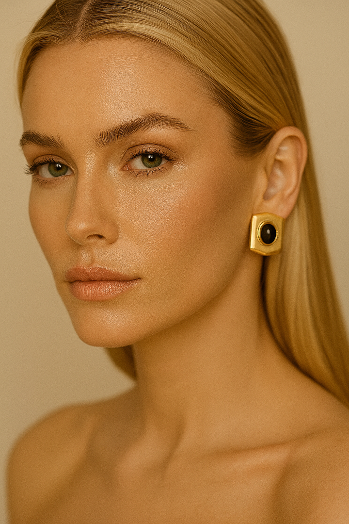 Elevate your style with these stunning gold-plated earrings featuring exquisite black onyx stones. The black onyx beautifully contrasts with the luxurious gold plating, making these earrings a perfect accessory for any occasion. Whether you're dressing up for a night out or adding a touch of elegance to your everyday look, these earrings are sure to turn heads and spark conversations.