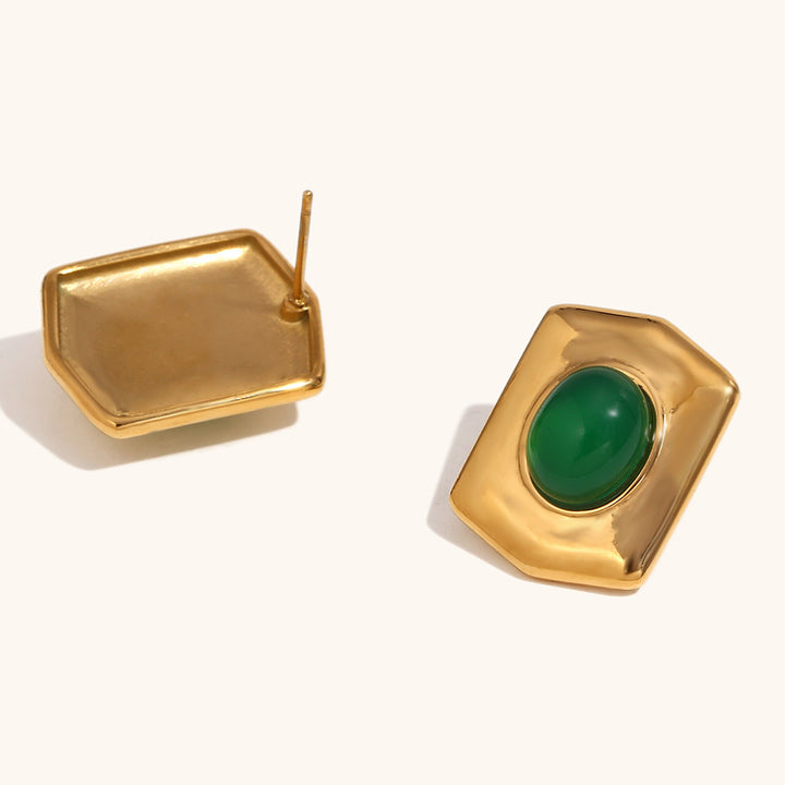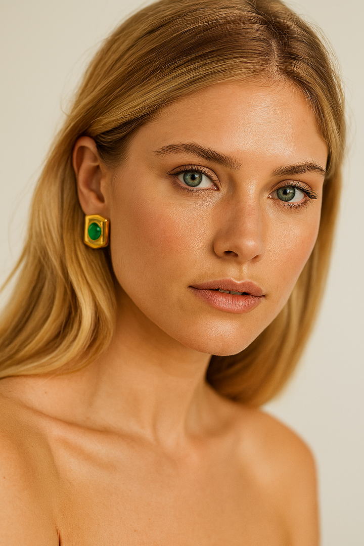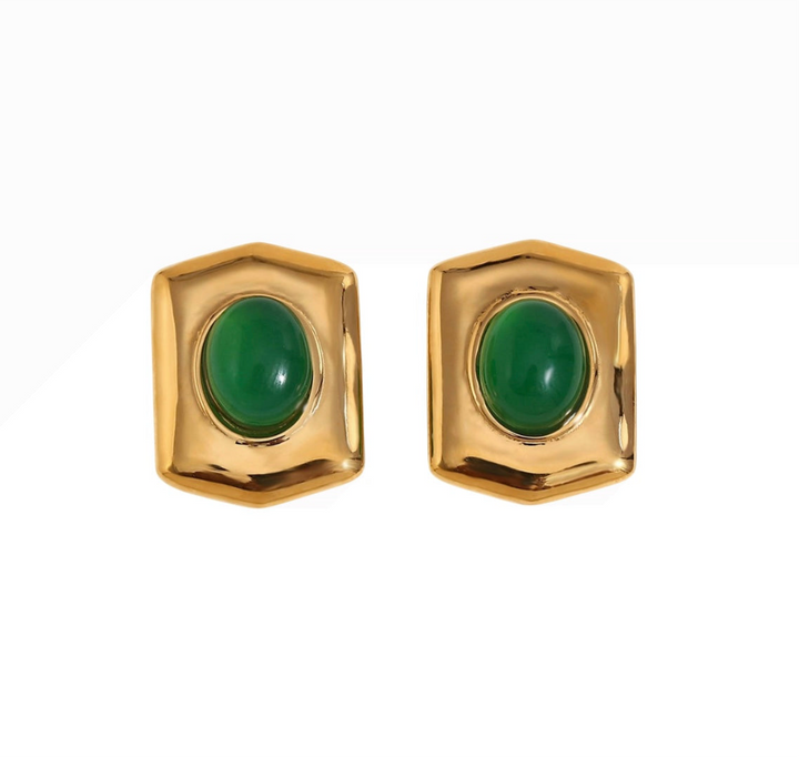 Elevate your style with these stunning gold-plated earrings featuring exquisite green onyx stones. The vibrant green hue of the onyx beautifully contrasts with the luxurious gold plating, making these earrings a perfect accessory for any occasion. Whether you're dressing up for a night out or adding a touch of elegance to your everyday look, these earrings are sure to turn heads and spark conversations.
