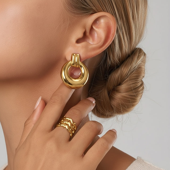 Elevate your style with our ultra-lightweight statement earrings. Waterproof, sweat-roof, and tarnish free--Perfect for any occasion.