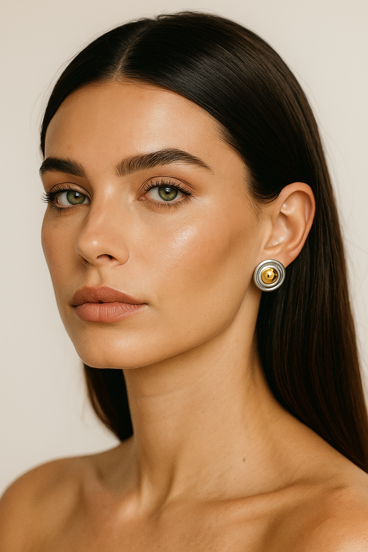 Elevate your style with these stunning two-tone earrings. Whether you're dressing up for a night out or adding flair to your everyday look, these earrings are sure to turn heads and spark conversations.