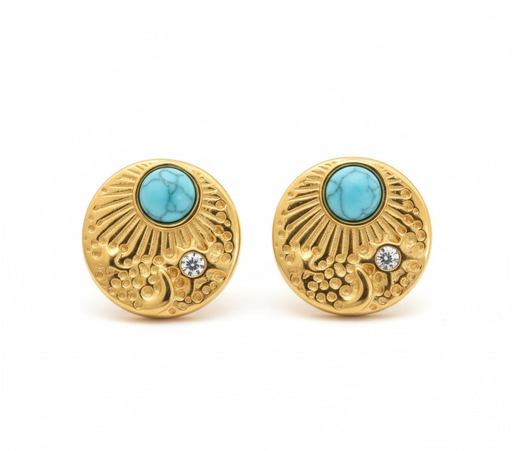 Elevate your elegance with these captivating gold plated turquoise gemstone earrings, a harmonious blend of luxurious materials and vibrant natural beauty. These earrings exude a timeless charm that effortlessly bridges classic style and contemporary flair.