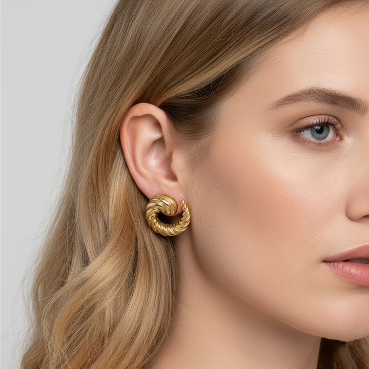 Elevate your accessory game with these stunning gold plated twisted earrings, designed to add a touch of elegance to any outfit.