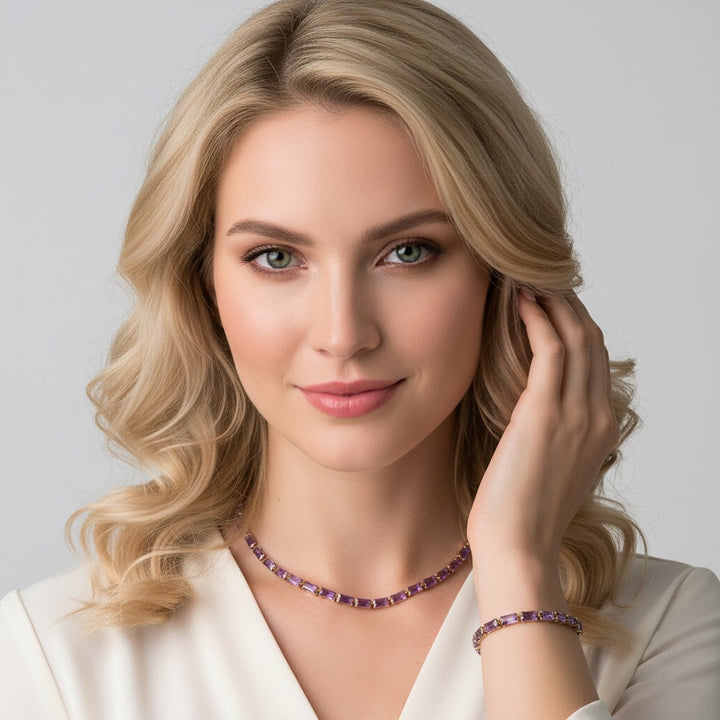 Get your bling on with this stunning purple zircon necklace and bracelet bundle. Perfect for adding a pop of color to any outfit!