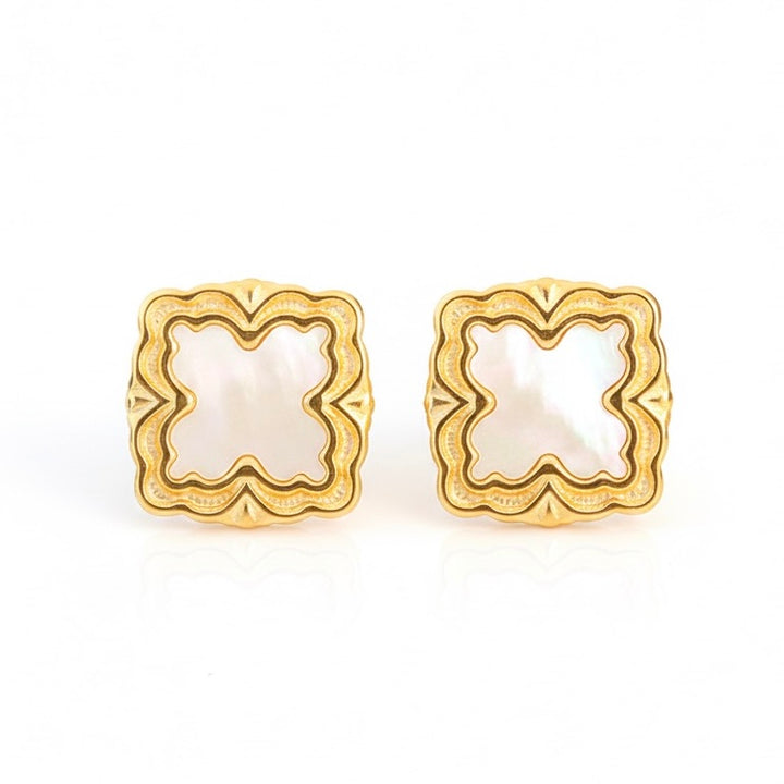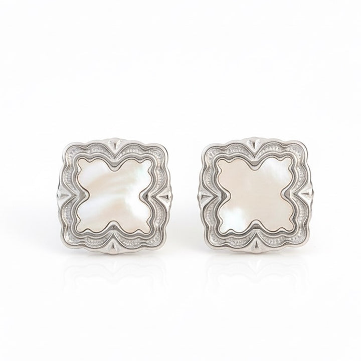 These earrings exude a sense of vintage allure while highlighting the unique beauty of mother of pearl.